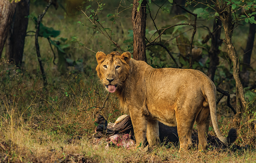 A safari in Gir is an experience steeped in anticipation and awe. As the morning light filters through the teak trees, the forest hums with life—spotted deer graze warily, langurs call from the branches, and somewhere deep within, a lion’s roar reverberates across the valley. The terrain unfolds through dusty trails and grasslands that open suddenly to reveal the regal silhouette of a lion pride basking in the sun. Guides recount tales of courage and coexistence, of the Maldharis who share this land with the big cats. Every drive feels alive with possibility: a leopard melting into the scrub, a peacock displaying in the golden light, or a crocodile gliding through still waters. As dusk falls and the forest glows amber, Gir reveals its true essence—a rare wilderness where history, culture, and wildlife thrive together under the watchful eyes of the king himself.
