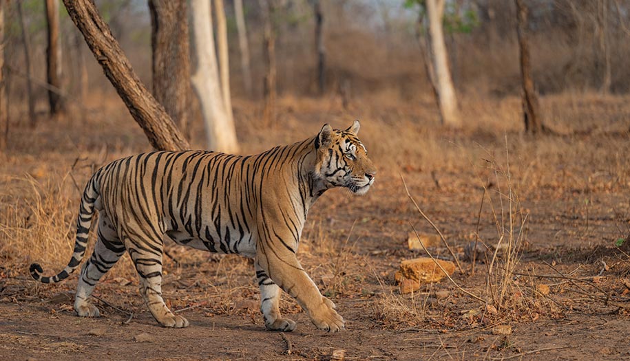 In Panna, mornings begin with golden light spilling over rivers and rocky hills, casting shadows across the forest floor. Tigers move with silent purpose through dense woodlands, while herds of chital and sambar graze cautiously in open glades. Crocodiles lie in the sun along riverbanks, and birds fill the air with an endless chorus. Trails wind past waterfalls, hidden pools, and sculpted rock formations, each turn revealing the park’s layered beauty. The Ken River reflects the sky as it winds through forests, offering intimate wildlife sightings and quiet moments of reflection. Here, every encounter—whether a fleeting glimpse of a tiger or the distant cry of a hornbill—feels unplanned and raw. Panna captivates through its contrasts: serene rivers, rugged hills, and the thrilling unpredictability of the wild, leaving an imprint on every visitor who ventures into its heart.