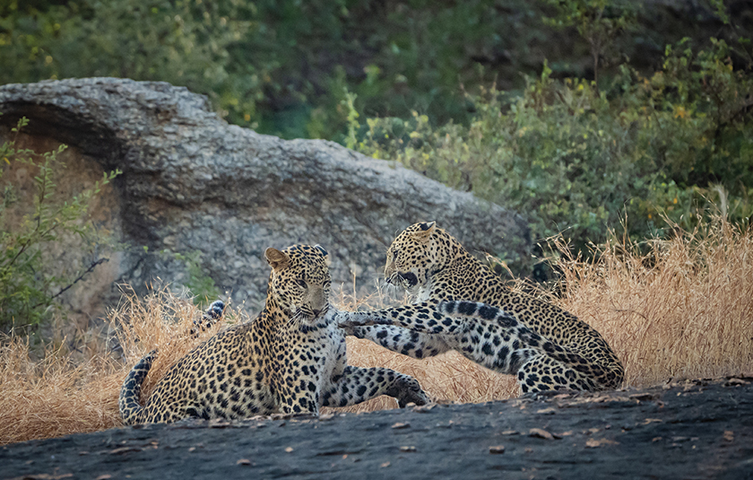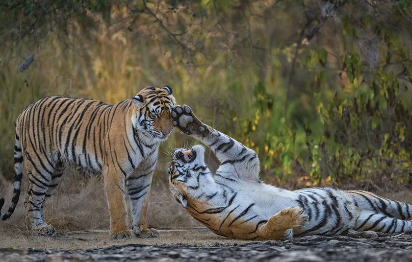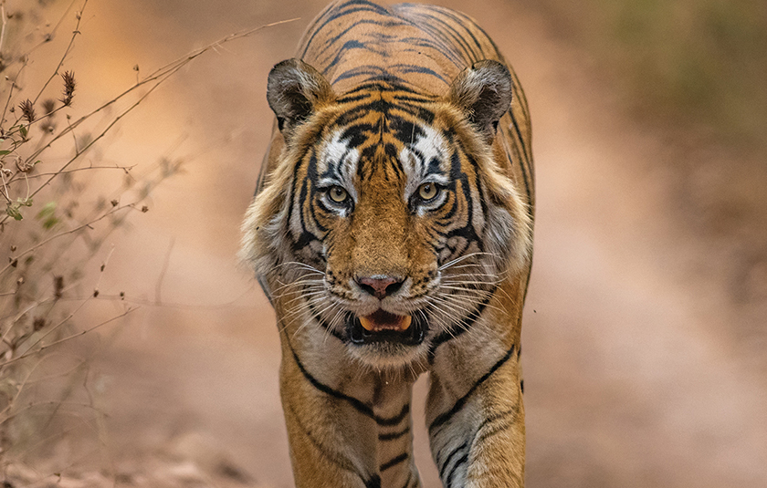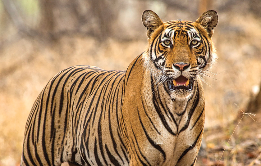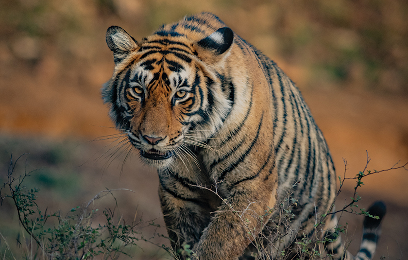The beautiful lakes, rolling hills, and dhonk forests of Ranthambore create an atmosphere unlike any other. As dawn breaks, mist rises over the lakes while sun rays pierce through, revealing Sambar deer, peacocks, and the majestic tiger—the true king of this land. With ancient fort walls as its backdrop, every moment here unfolds into wild drama and unforgettable encounters.