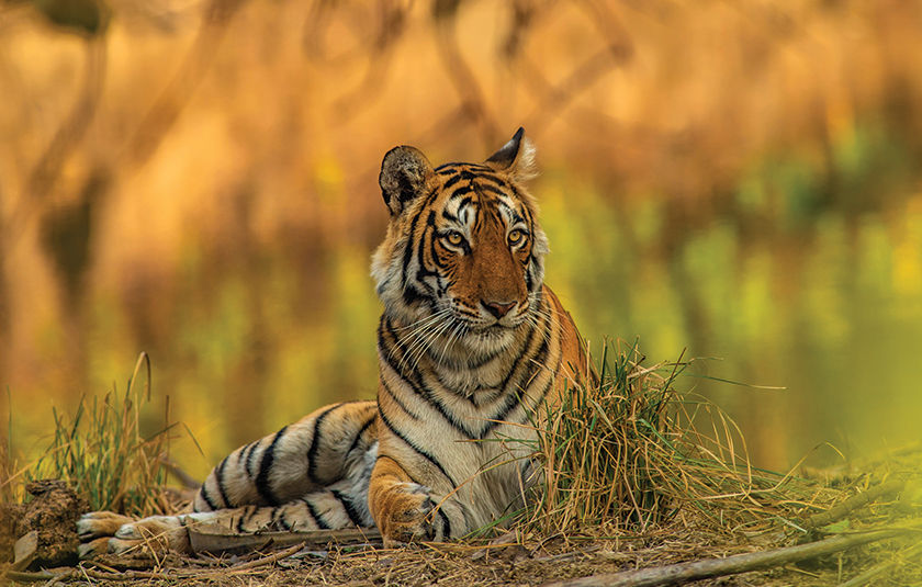 A safari through Ranthambore is not merely a journey into the wild—it is a passage through history, legend, and raw natural beauty. As you traverse the rugged Aravalli and Vindhya hills, every turn reveals a new vista — ancient banyan trees framing crumbling temples, golden grasslands shimmering in the sun, and serene lakes reflecting the grandeur of the 10th-century Ranthambore Fort that watches over the land like a timeless sentinel. The fort’s silhouette, rising above the forest canopy, lends a majestic backdrop to every expedition. The thrill of spotting a tiger emerging from the mist near Rajbagh Lake or walking along the ruins of an old palace is simply unmatched. Each rustle in the dhonk forest or distant alarm call sets your pulse racing. Whether at dawn’s golden hour or in the soft glow of dusk, the landscape of Ranthambore wraps every safari in an aura of mystery, excitement, and awe.