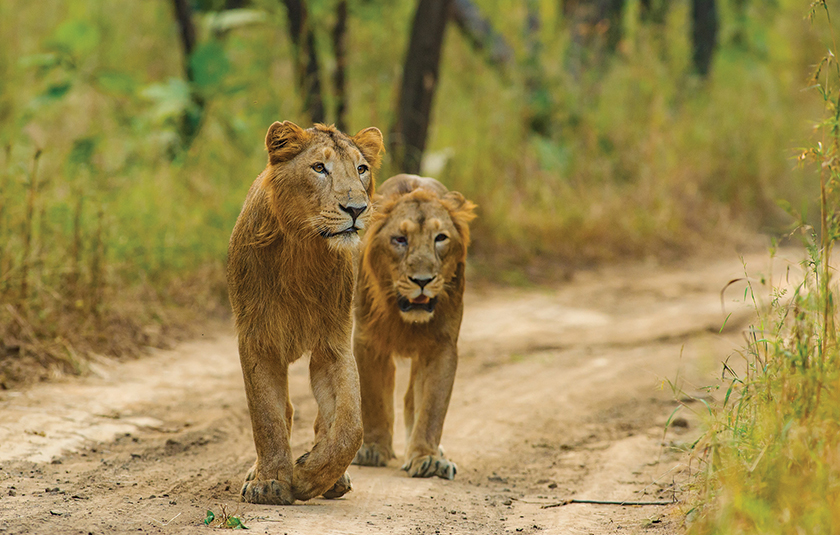 Nestled in Gujarat’s Junagadh district, Gir is the only place on Earth where the Asiatic Lion roams free. Spanning over 1,400 sq. km, Gir’s semi-arid landscape weaves together dry deciduous forests, acacia scrub, and open grasslands nourished by perennial rivers. Established in 1965, the park represents one of conservation’s great success stories, restoring a species once on the brink of extinction. Today, more than 600 lions share this terrain with leopards, hyenas, jackals, and over 300 bird species. The Kamleshwar Dam and its serene waters draw marsh crocodiles and migratory birds, while teak and flame-of-the-forest trees colour the land. Maldhari communities continue to live in calm coexistence with lions, their traditions inseparable from Gir’s identity. Every visit becomes a journey through history, conservation, and enduring natural splendour.
